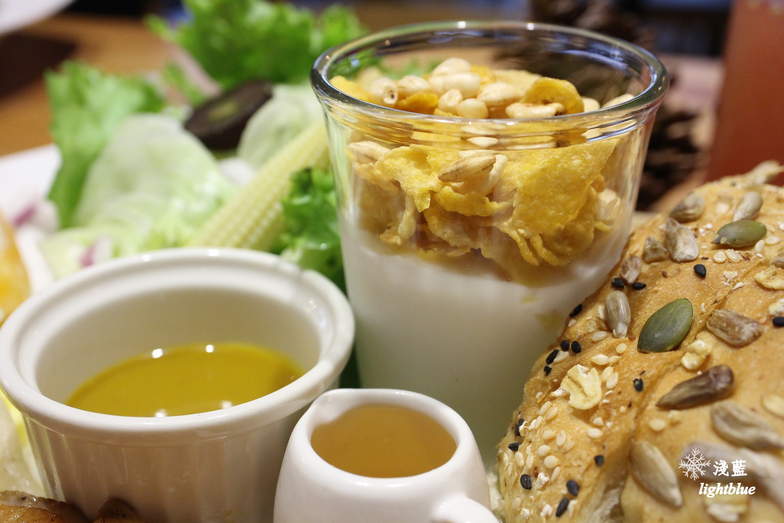 蜂蜜優格也是店家自製,質地偏稀,不黏稠也不會酸,加了蜂蜜味道很好,不過我一向不是太喜歡玉米片,如換成綜合堅果會更好