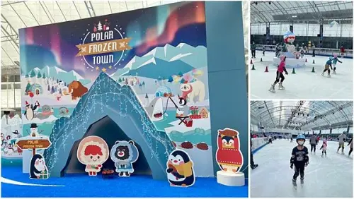 不僅滑冰場免費進場,就連冰鞋和整套的護具也是免費提供。