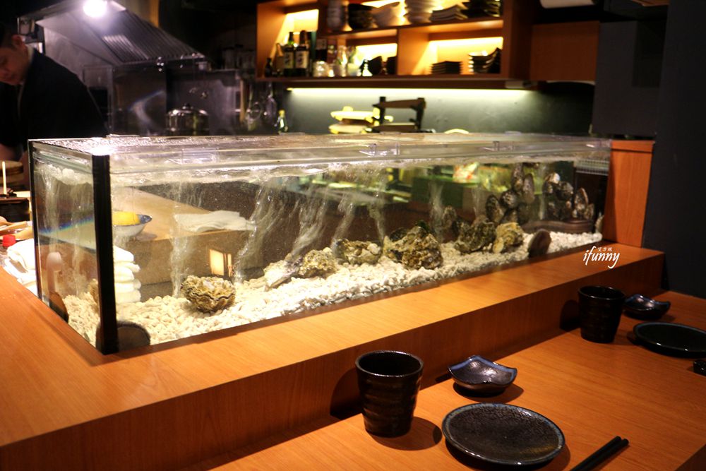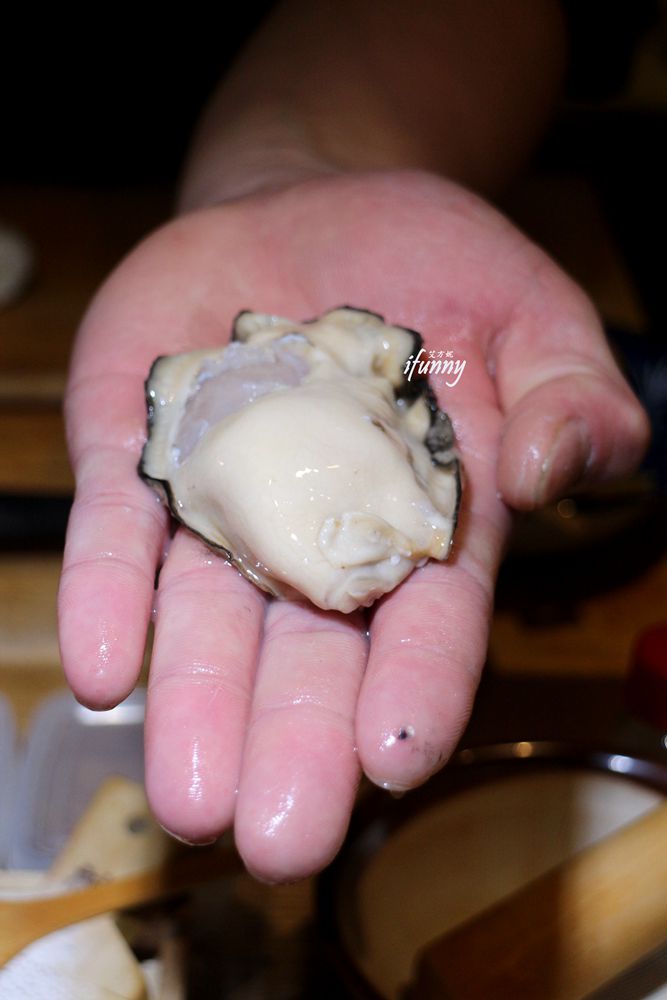 阿龍師傅從水族箱中拿出了生蠔,要處理活體生蠔並不容易,他可是費了不少勁才將殼打開來。