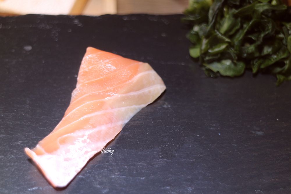 有發現這鮭魚沒有一般加拿大的鮭魚那麼油嗎?的確入口不偌一般油膩,但魚肉的清甜度卻很明顯,甚至咀嚼到一般鮭魚少有的Q勁。