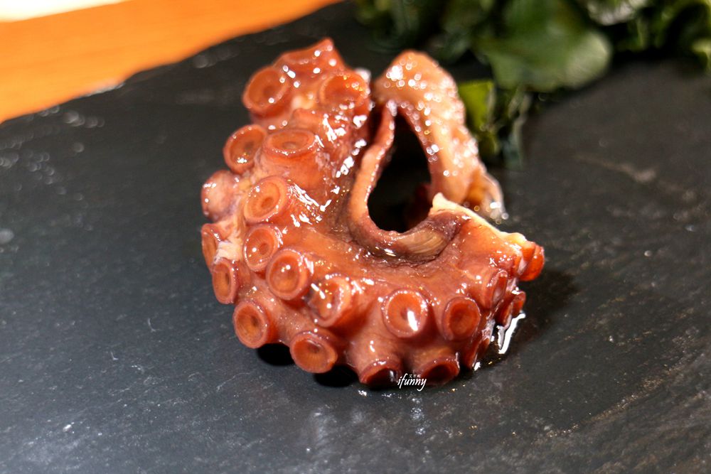 阿龍師傅事先將這章魚腳拍打,破壞其纖維,加上滷漬的時間,整體的口感相當柔軟,但仍可咀嚼出章魚的口感及滷汁的香甜。