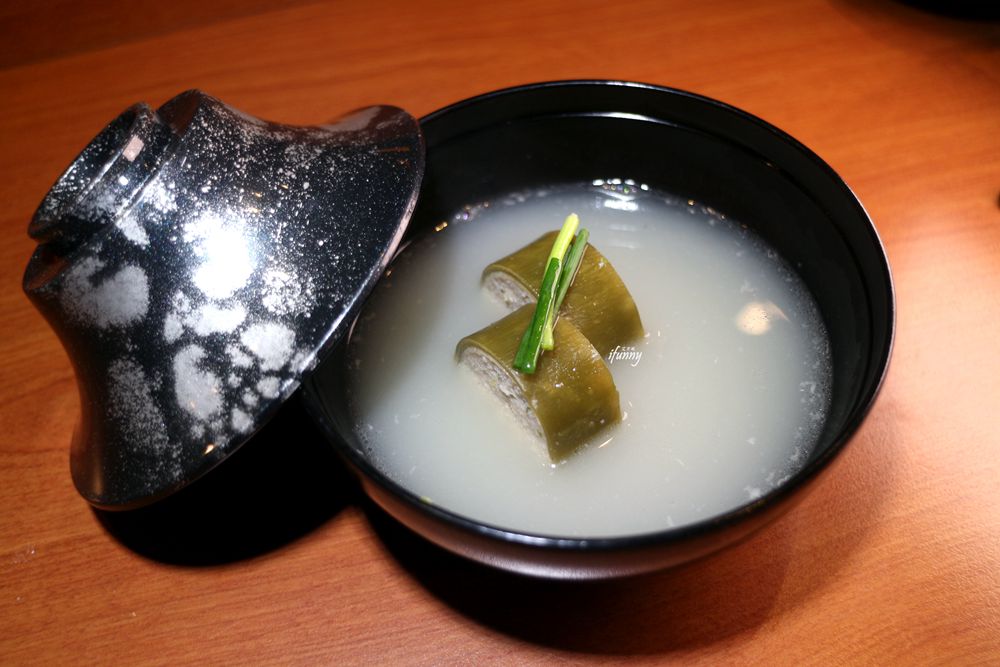 這天的湯是以真鯛魚骨熬煮至湯汁呈白色,加入的是真鯛魚自製的魚丸,每口都是濃鮮可口。