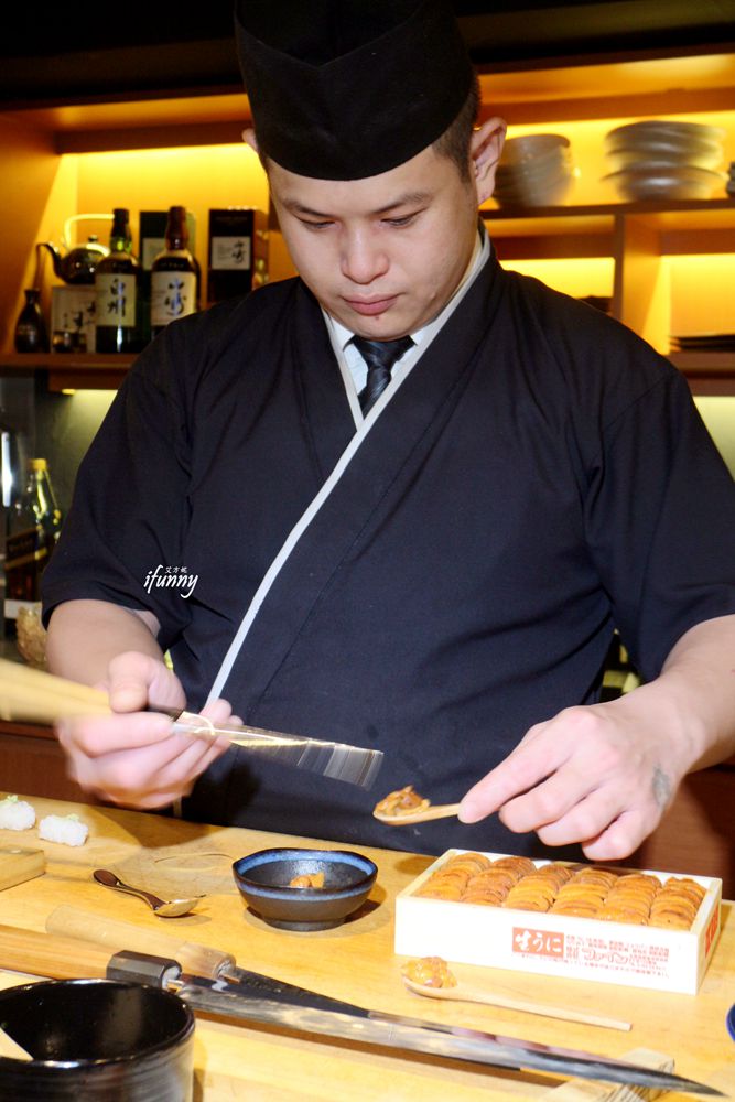 這位就是黃建龍師傅,有著娃娃臉的他其實已有十多年的經驗,而他曾任職的吉兆壽司,正是艾方妮吃無菜單日料的啟蒙之地呢!