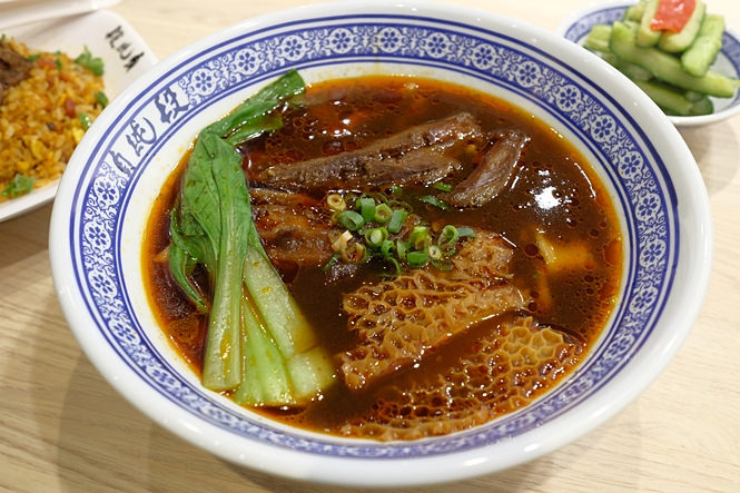 打從第一次在信義威秀吃到時,就一直對它們家的湯頭念念不忘,之前從陽春版開始進階,這次來可是吃到超受歡迎的三寶麵,牛筋、牛肚、腱心,一次就有三種享受,如果你跟我一樣喜歡川味,那麼肯定愛瘋它們家的牛肉麵。