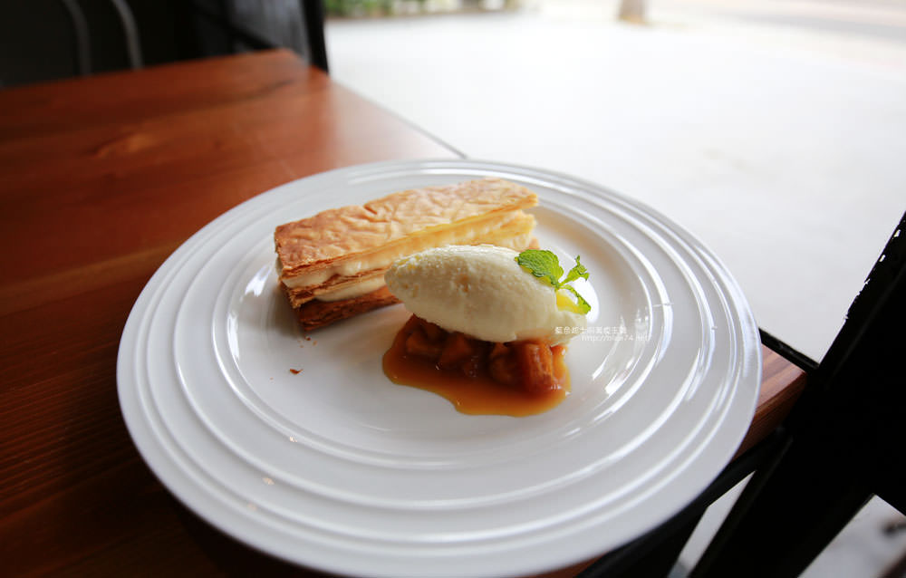 酥脆千層搭配冰淇淋和漬蘋果