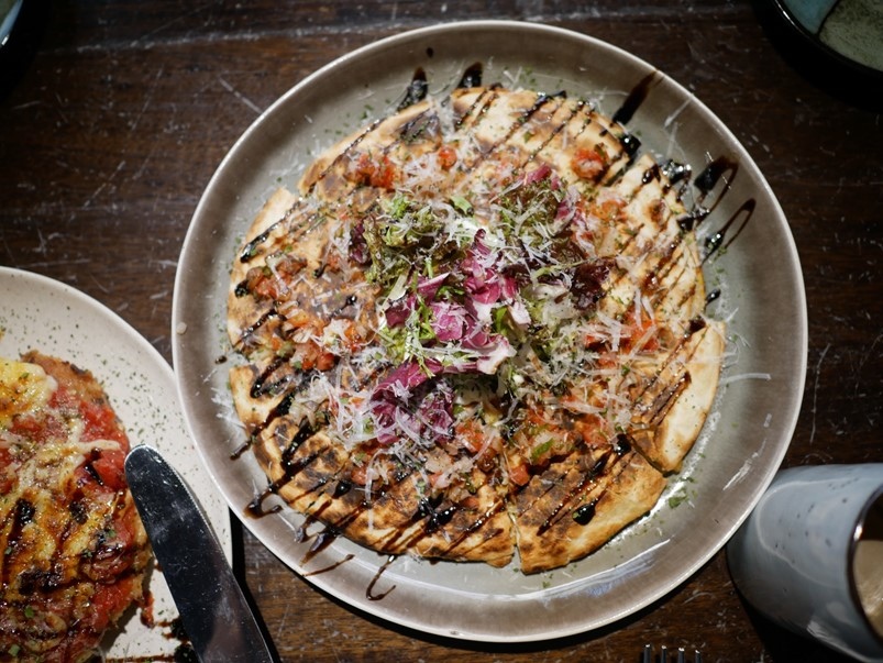 雞肉煎餅皮脆但不會太乾,雙層餅皮加上多種餡料口感豐富,白色莎莎醬讓番茄不會過於搶戲,比較起來算是稍清爽一點的組合XD