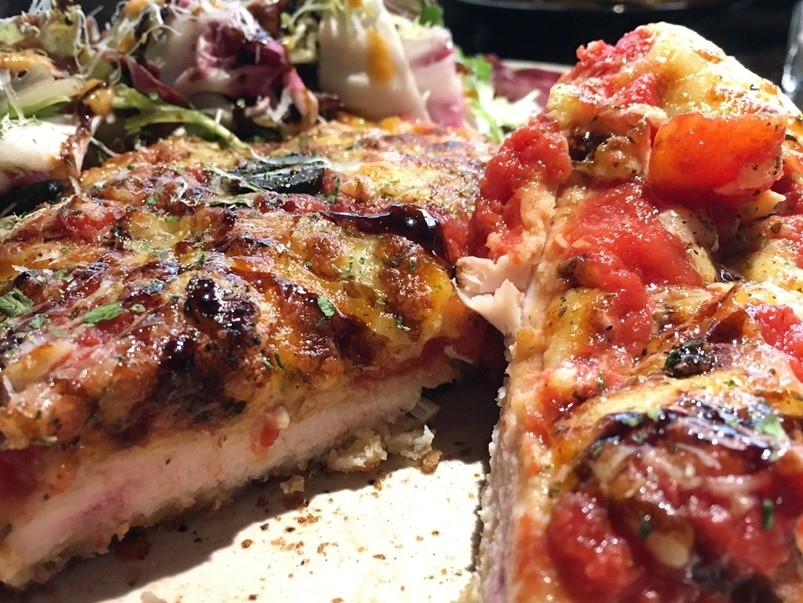 以超厚雞肉當Pizza的底!!吃起來超爽!!番茄跟起士也很多,雞肉的肉質也很軟嫩,厚實的雞肉口感,蕃茄的微酸解膩,吃粗飽的阿!!!