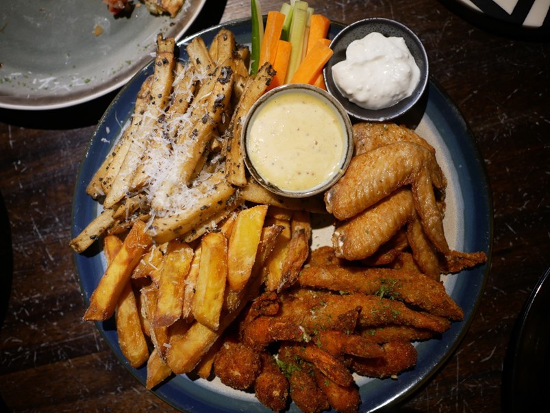 "金沙蛋黃"口味,在雞翅拼盤裡算是滿少見的,搭在一起的味道跟想像中的差不多。