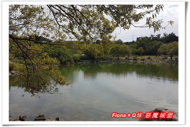 除了周邊環繞的一叢叢綠油油外,中間還有一座優美的生態湖,一旁矗立著紅色八角形屋頂的建築,伴著綠樹一起倒映湖面,形成一幅美麗的景致,十分迷人 !