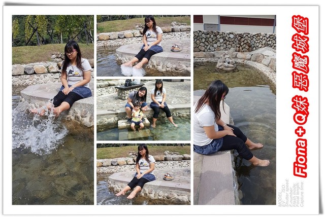 我們泡的時候水溫是涼涼的,有點點失望根本沒有在泡溫泉的感覺,但是小孩只要能碰到水還是很開心,尤其Q妹一直問可以下去玩水嗎 ? 呵呵 ! 因為天氣微涼,所以就沒答應她,只讓她坐著踢踢水,不過這小妞還是玩得全身濕啦 !