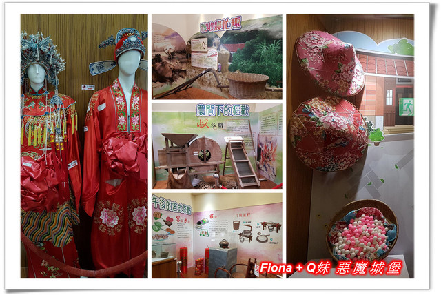 另一展區內有「客家傳統民居」介紹,透過模型與文字,讓遊客認識客家特有的建築,包括「四合院」、「圓樓」、「方樓」、「五鳳樓」、「圍龍屋」等,其實客家建築大多都是中間有個共同空間,然後大家分別住在周邊,我一直覺得這有種團結的象徵。