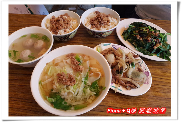 菜是一次送上桌,我們點了魯肉飯、湯粄條、青菜、山豬肉與貢丸湯,還算挺豐富,呵呵 !