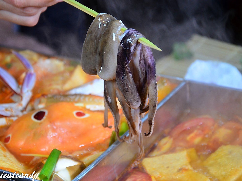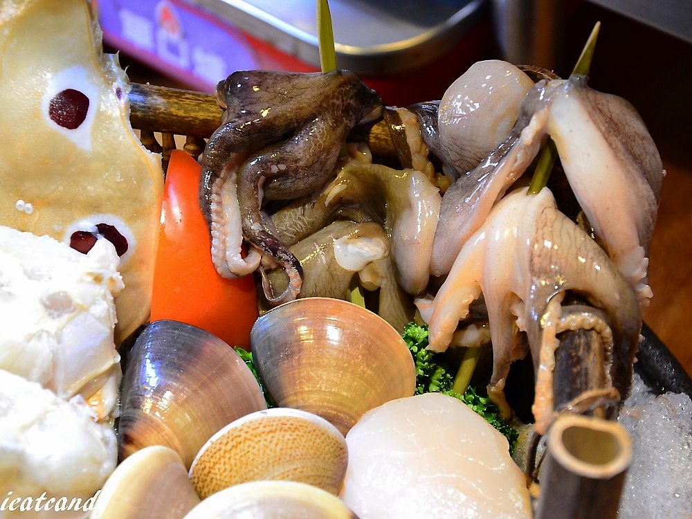 每一種火鍋都會附上一個澎湃海鮮盤,有超大生蠔、螃蟹、章魚、蛤蜊、草蝦、北海道干貝等。