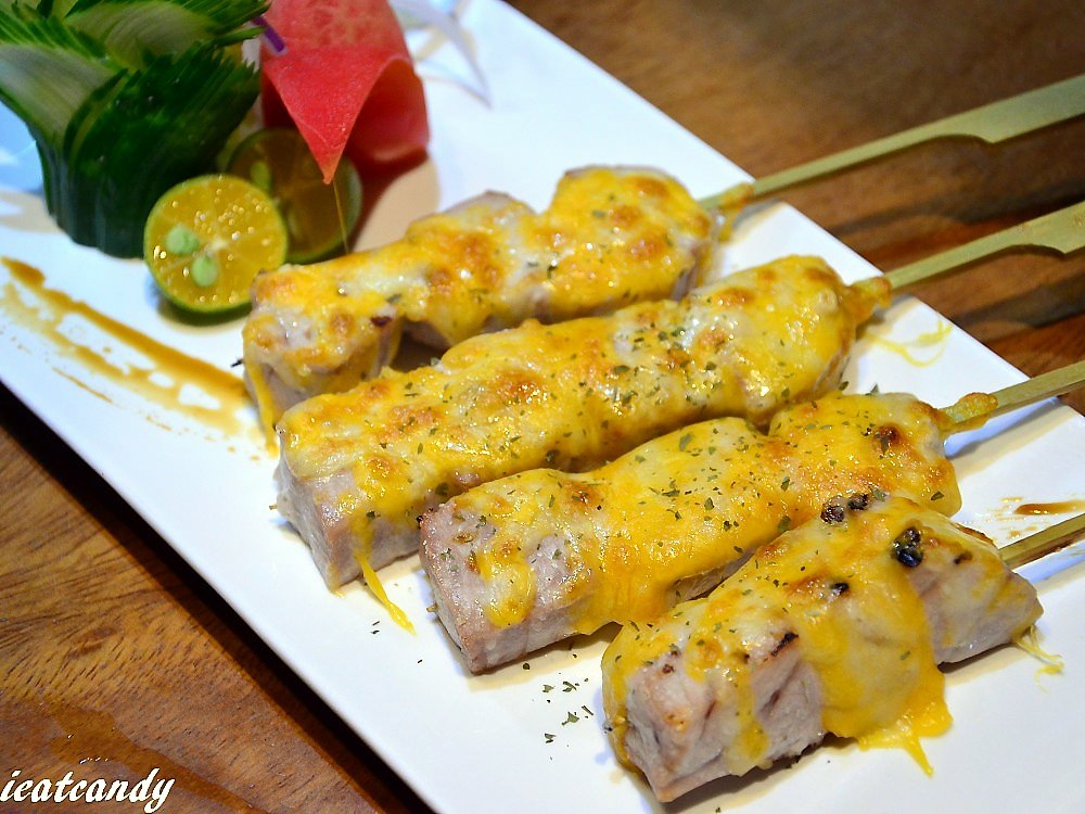 起司鮪魚串,濃郁的起司就要趁熱吃才能享受那融化的滋味阿~擠上一旁的金佶,酸甜醬汁可以提鮮味、去腥味外,還能降低亞硝酸鹽的含量,肉質很緊實,那融化的起司鹹香口感覺得不錯。