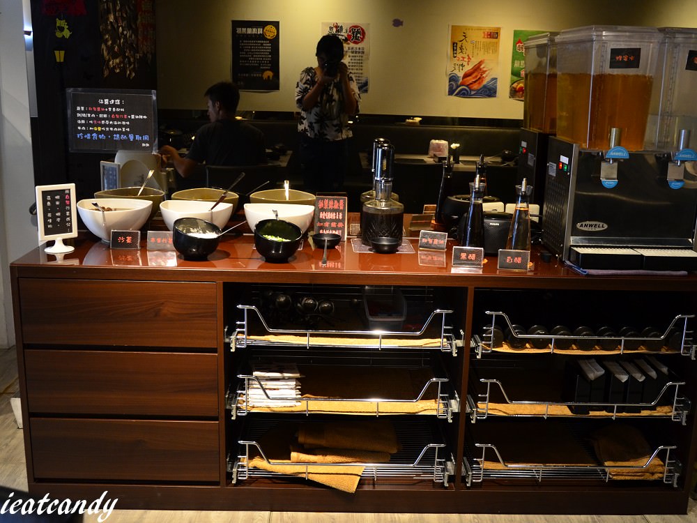 此區為配料區。佐料有特製沙茶及市售沙茶,愛伊特已經很久沒有吃火鍋沾佐料了…飲品提供的是蜂蜜水、電解水。