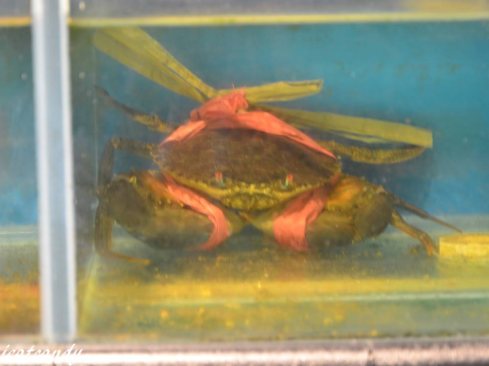 這裡有新鮮的沙公,螃蟹還蠻大隻的。底下黑板有提供八月的打卡優惠,只要按讚拍照+打卡,即送大草蝦一隻!(真的很大喔!