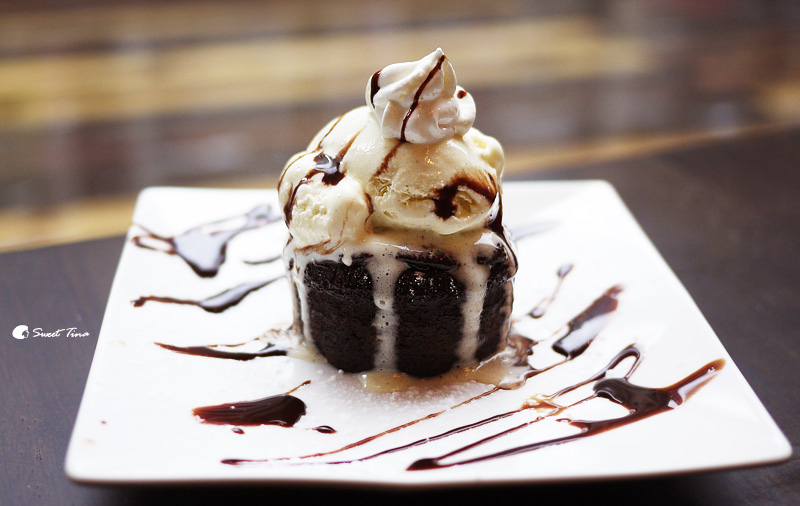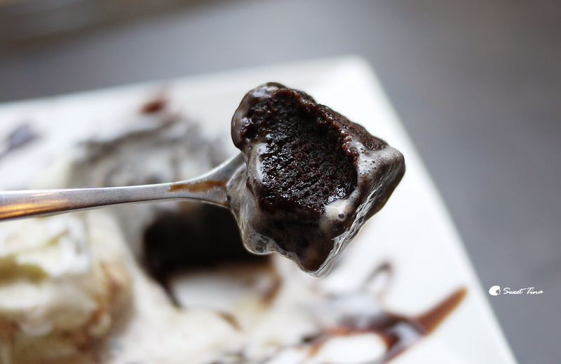 當日甜點(熔岩冰淇淋) - 上頭為香草冰淇淋,底下為微熱的巧克蛋糕,所以送上來沒多久冰淇淋就開始融化啦,一定要把握時間快速解決喔。