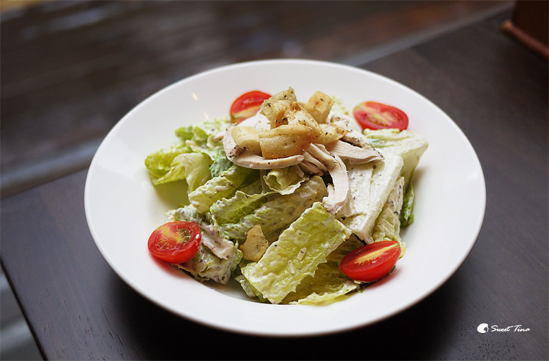 雞肉凱蕯沙拉 - 青脆的蔬菜搭上鮮嫰的雞肉,淋上剛剛好的醬汁,吃起來清爽可口。