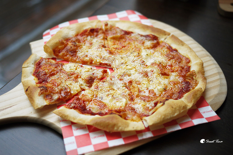 四種起士(12"Pizza) - 這款四種起士Pizza是以紅醬為基底加上四種起司為主要的口感搭配。