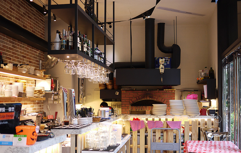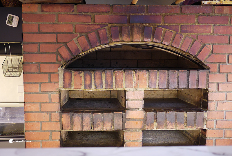 開放式的廚房,但裡面不會有油煙味,還可以看見以紅磚窯烤爐呢。