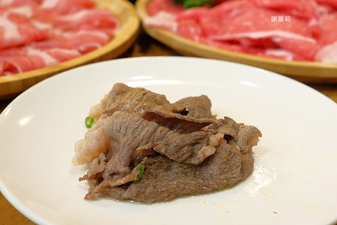 湯底味道濃、煮出來的牛肉就算不沾醬也很有味道,肉質是屬於瘦肉較多的呈現,會偏向吃牛肉本身的甘甜,喜歡它咬在嘴裡的飽足感,大片肉吃起來就是超過癮。