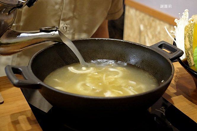 南瓜湯一上桌,我就忍不住先偷喝了一口,滋味給了我驚豔感覺,原來店員真的沒騙我,養鍋的南瓜湯喝起來跟想像中差好多。