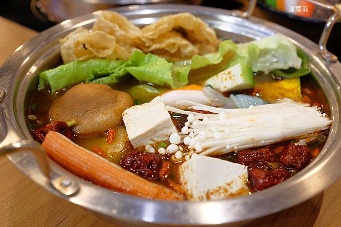 丸子、餃類、南瓜、香菇、玉米、豆腐、芋頭、山藥片、南瓜、金針菇、米血、地瓜、海帶、豆皮、黑木耳,連青菜也給得好多,吃下這份飽到不行,偷偷告訴大家,如果不想要菜盤,養鍋還有用菜盤換肉的撒米思呦!