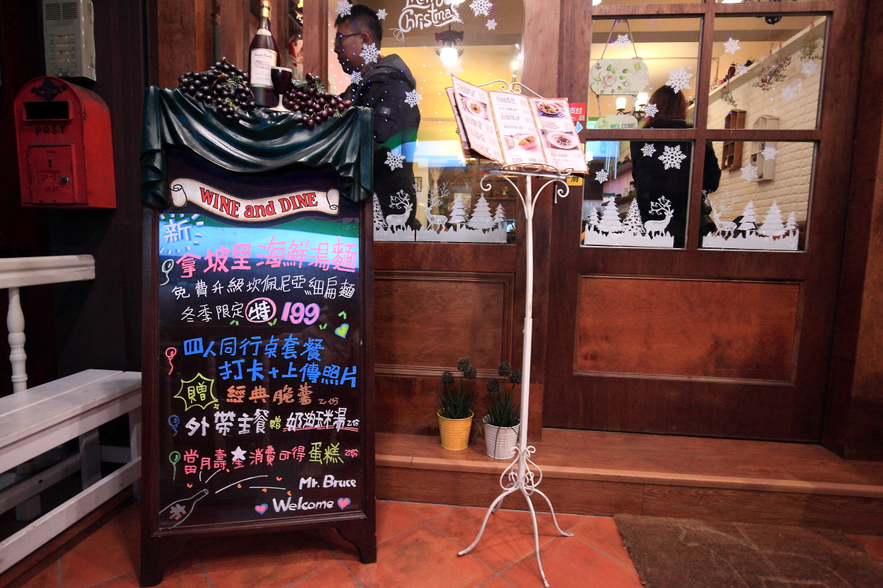 從江子翠捷運站5號出口步行約10分鐘即可抵達Mr. Bruce老布廚房,咬咬從附近的停車場一路走來,沿路感覺得出來這條巷子並不熱鬧,但靠近了Mr. Bruce老布廚房卻感受到濃濃節慶歡樂的氛圍,適逢聖誕節前夕,老布廚房也提前為店面做妝點,歐式小露臺上擺放了聖誕樹,屋簷也垂墜了閃耀亮麗的聖誕燈,在小巷弄顯得格外耀眼明亮