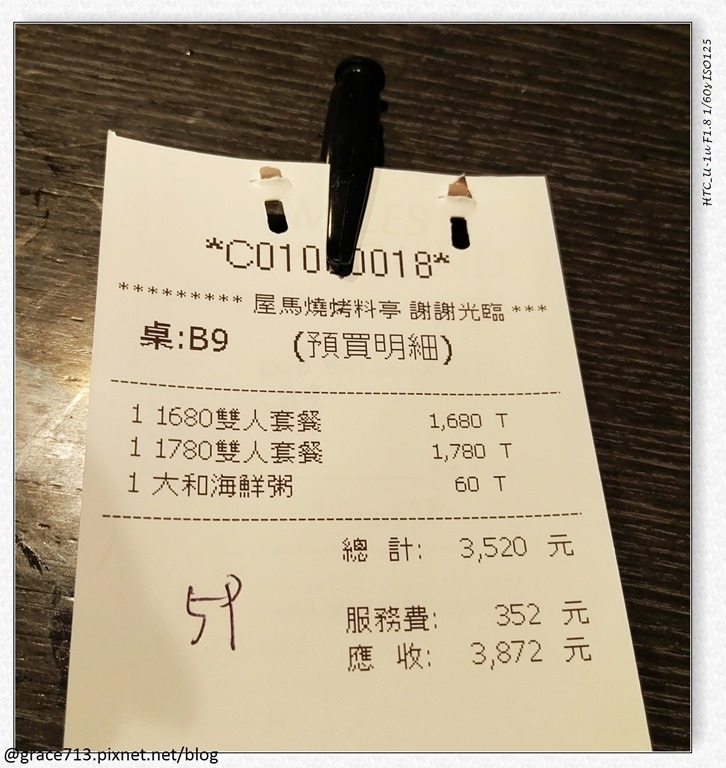 今年12 月, 因為跟香港朋友約在台中相見, 香港朋友問有什麼推薦的, 我有推薦這間燒肉, 他們說想試試, 我就來訂位看看吧, 目前屋馬有4 家店, 根據台中美食團的網友們表示, 最難訂的是園邸店, 最好訂是國安店, 平日當然比假日好訂, 我是訂星期五下午 1:00, 訂的時間是三天前下午, 一開始打是電話中, 但第三通就打通了, 沒有傳說中的要打N 通還是要半夜打, 本來只有11:00 或 下午2:00 的位子, 但我正在掙扎時, 服務人員突然說, 1點有人取消, 那一點可以嗎, 但要跟人併桌哦, 我想併桌就併桌, 有位子好 就這樣, 我超幸運的訂到我要的時段了