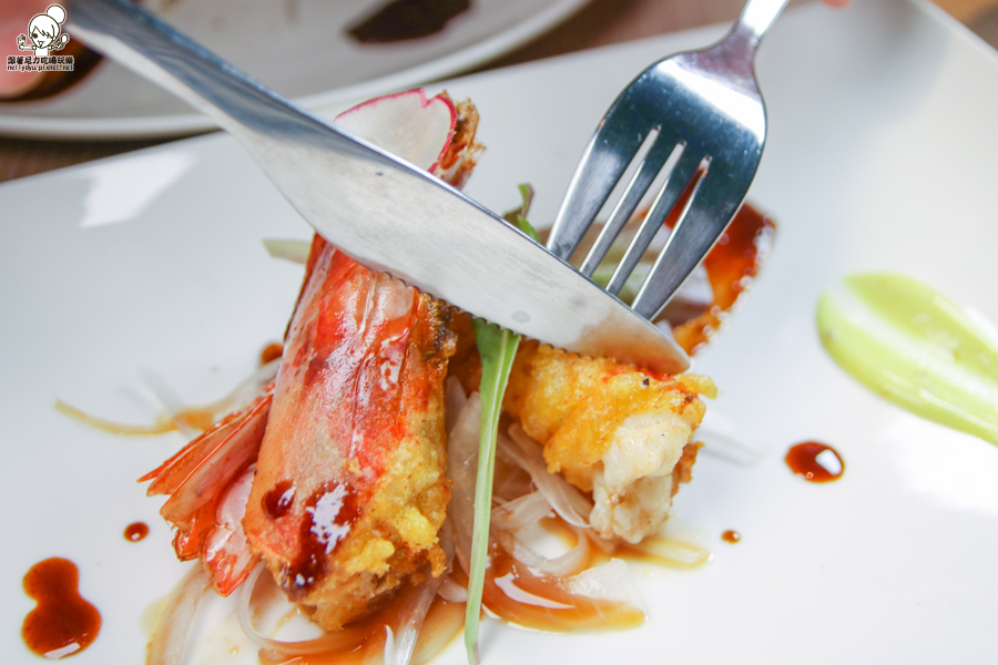 可以先單吃品味蝦子的鮮味,再沾上主廚特製醬,品味多層次不同的風味