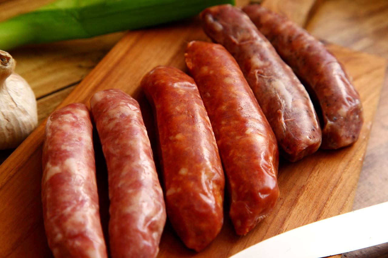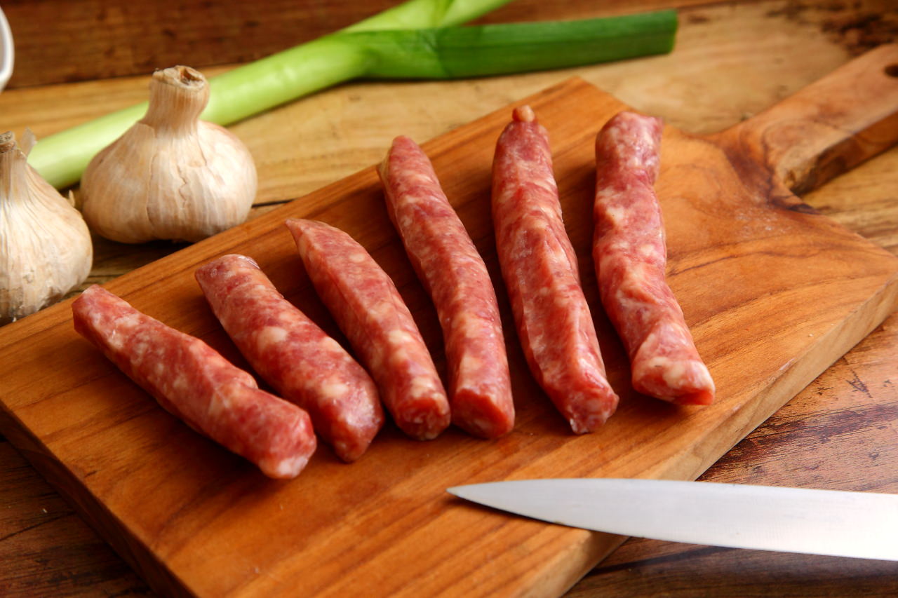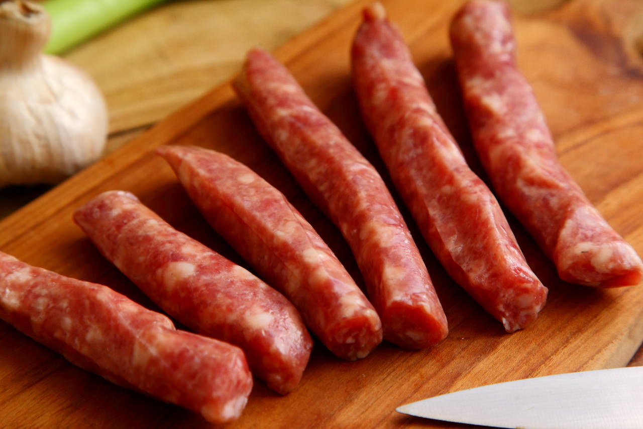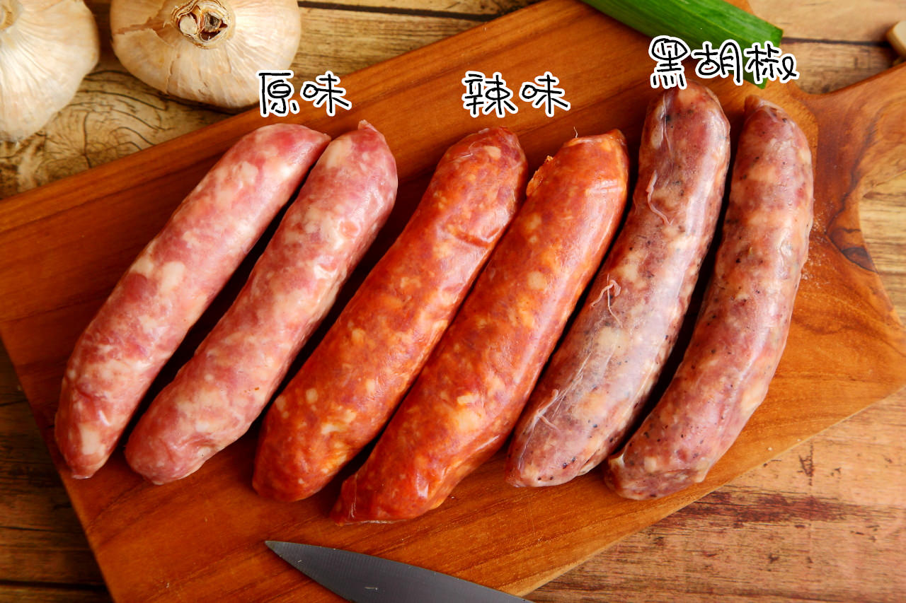 永山香腸目前有四種香腸,原味、黑胡椒、辣味及小羊腸香腸,還沒下鍋前的狀態,每根香腸看起來都肥嘟嘟的相當飽滿