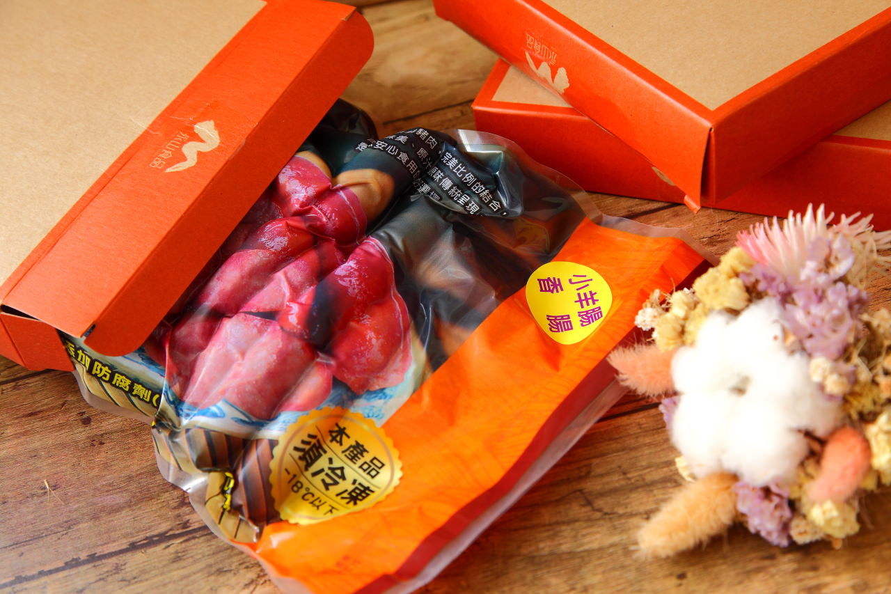 打開紙盒拿出香腸,永山香腸採真空包裝,全程冷凍運送,確保每一包香腸送到消費者手中都是最完美的狀態