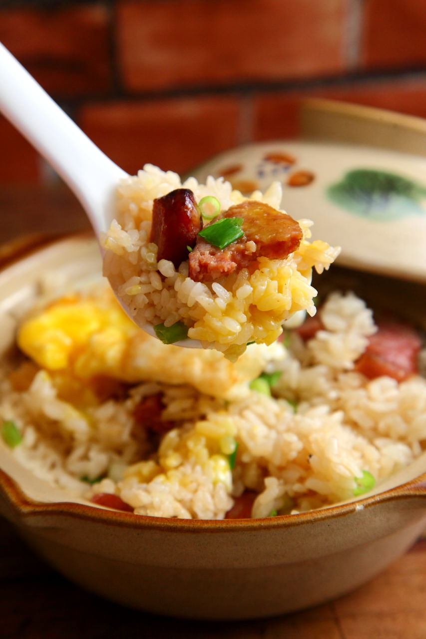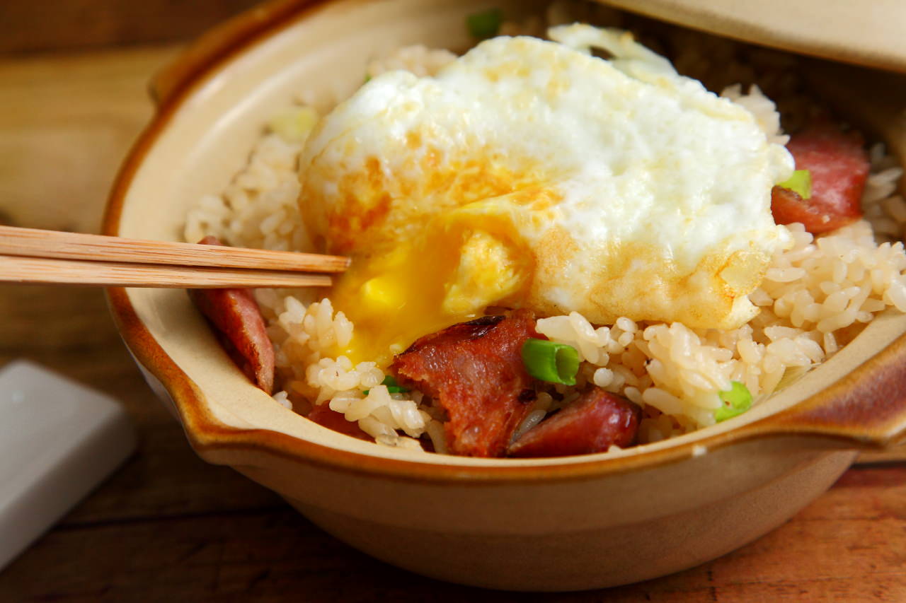 煎顆半熟蛋,將半熟的蛋黃混著香腸煲飯一起吃,圓潤又濃郁的口味,越吃越上癮,一次坐起來隔天帶便當也超合適的
