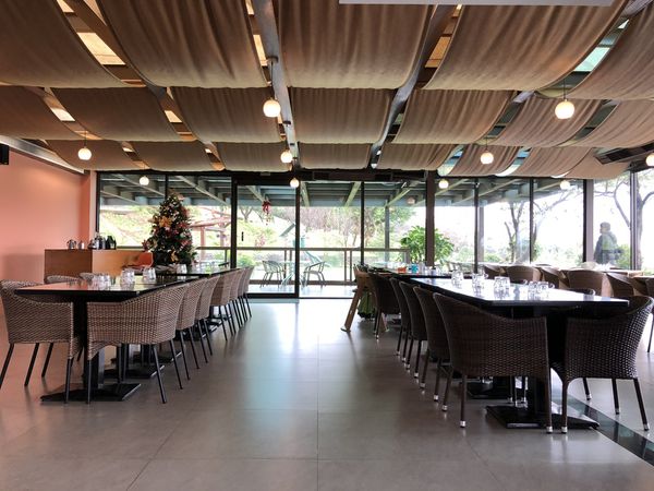 行館主要分為室內及戶外兩大區域,室內的部分除了用餐環境以外,也有小朋友的靜態遊戲區、閱書區等,大量使用整片的落地窗,無論在哪裡都能將外面景觀盡收眼底,飄渺的山嵐、廣闊的山林,這些都是最棒的享受,也是給小朋友最自然的教材。