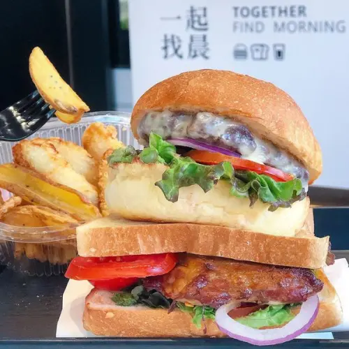 他的麵包是反過來夾內餡,這樣麵包就不會吸湯汁,所以要注意肉汁跟蛋液會滴出來阿,麵包部份有好吃,口感我們很喜歡,這樣搭配很不錯,內餡的牛肉等級用的不錯,搭配半熟蛋溼潤度很豐富,吃起來整個很滑順多汁,這個有好吃,不過其實我們喜比較想吃豬肋排這種比較美式一點的拉!!