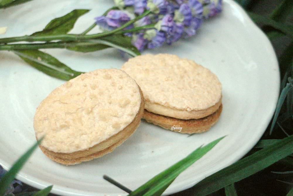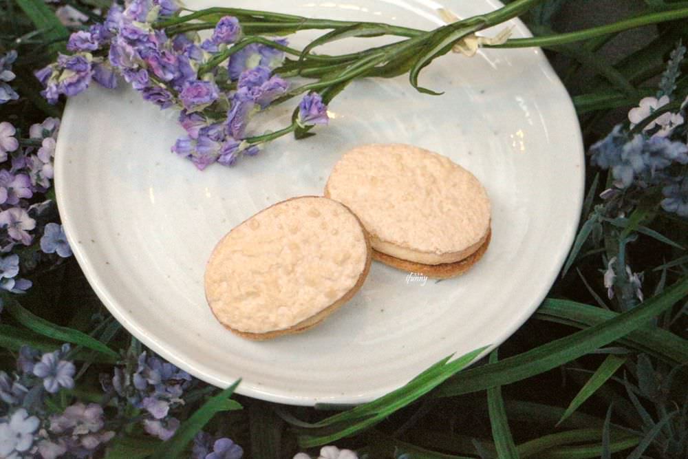 達克瓦滋主要是由蛋白、杏仁粉和糖粉製成的蛋白餅。在兩片餅皮中間的內餡是夾心焦糖奶油,這不甜膩的內餡更提出杏仁粉的香氣。入口脆酥,精心修剪過後,與唇舌接觸的就是溫柔的觸感,及職人的那份用心。