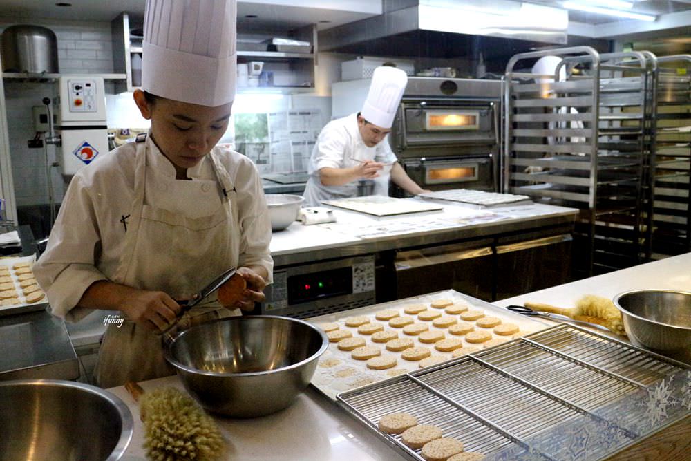 年輕的甜點師,正在為剛製作好的達克瓦滋,一個個修剪並清理,一點都不馬虎,專注的神情令人感動。而修剪的動作僅是為了入口後那單純卻豐富的口感。