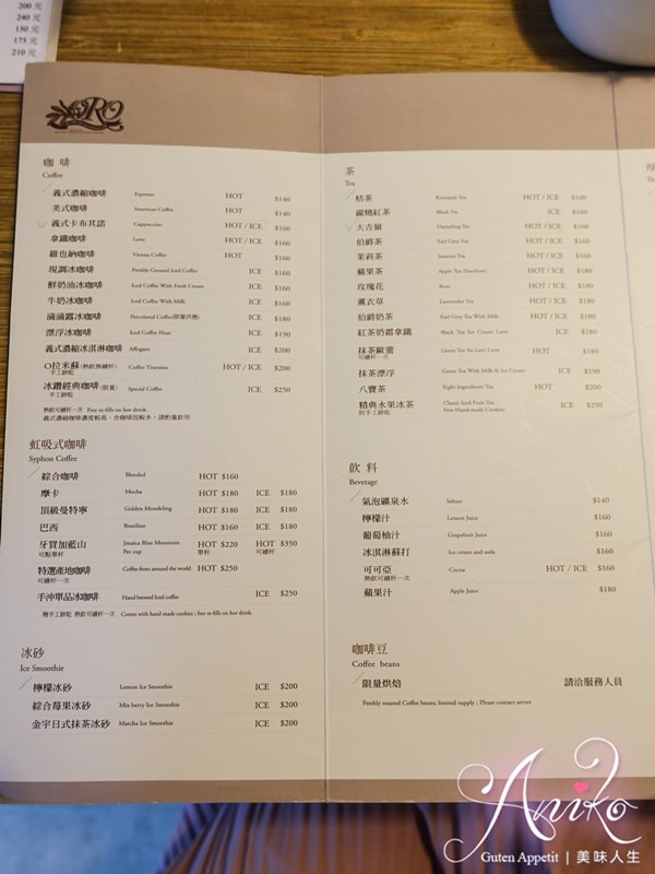 更清楚的menu可以參考官網 ORO咖啡館菜單
