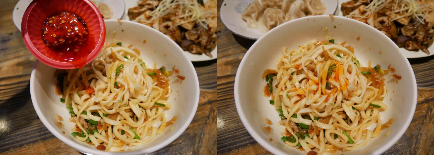 接著第二個吃法請加入大約一勺的辣油