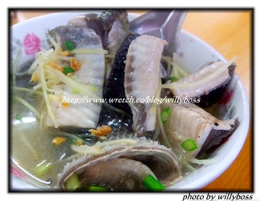 本來想點魚肉粥,不過客人太多,老闆趕不及切出來(可以看到一旁有員工瘋狂的切魚),所以點了魚肚粥,結果驚為天人!料爆多,魚肚很大一尾,我也算是個愛吃虱目魚肚的人,這尾虱目魚肚比我曾吃過的都還要大!而且相當鮮美,魚肉不柴不乾澀,和魚肚的脂肪一起入口,超滿足~粥裡還有加入大量的土魠魚和蚵仔,營養滿點。