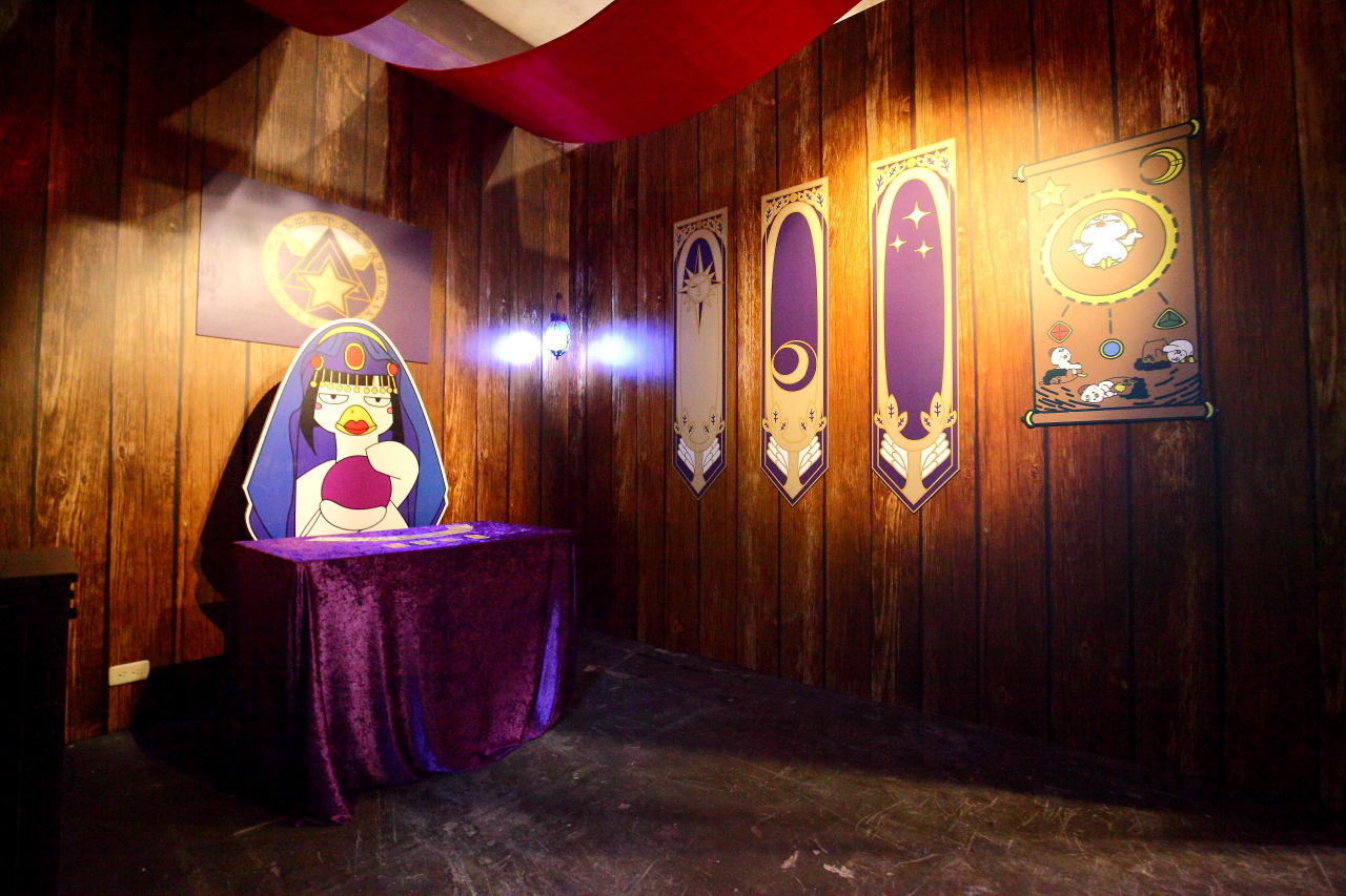香奈鵝占卜師引領你窺探命運,人生就像一場RPG冒險遊戲,跟著雞姐一起一一打敗生命中的奧客大魔王,迎接勝利的凱歌!透過特展APP招喚你的守護神,藉由水、火、雷三大元素精靈的指引,挖掘潛藏在你身上的魔法力量,展開這一場華麗的魔法冒險吧!