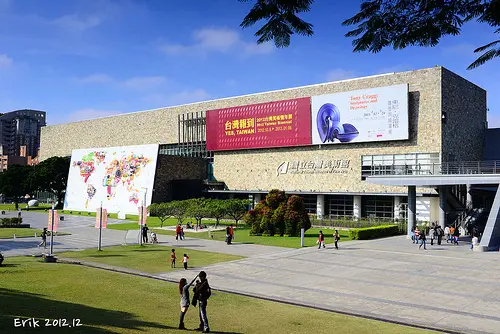 亞洲現代美術館 是日本安藤忠雄先生設計,這算是他第一個在台灣設計的建築作品吧,整個建築物的外觀是以突出的三角為主題,這在中國的風水來講應該是會衝到吧,被對到的應該會覺得很不舒服,好在他是在學校裡面,所以佔地空間大,沒什麼被這棟建築物對到的,所以說他的外觀真的是很前衛,裡面參觀展覽室250元,我們沒花錢進去,另外裡面有咖啡、書店跟禮品店,如果累的話除了外面的草地裡面也可以休息歐。