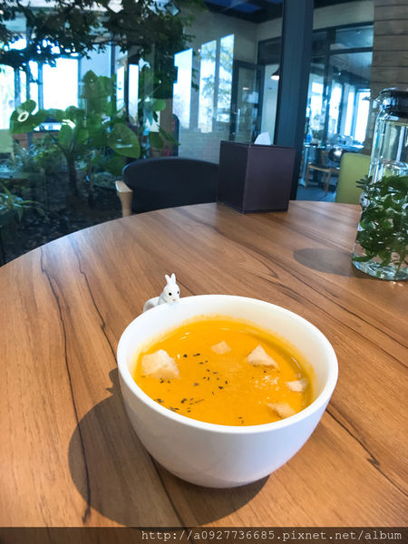 很香濃的南瓜湯,店家用心熬煮,每口都喝得南瓜的香甜美味,配上麵包,一口接著一口滾媽跟滾兒都超級喜愛。