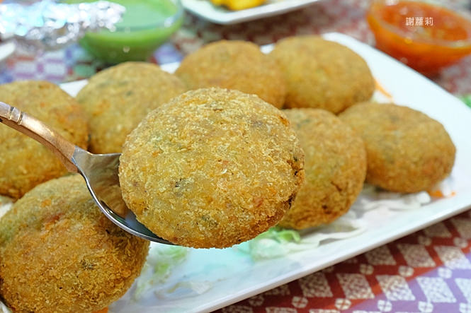 一個一個圓滾滾地,單單看外表會覺得有點像可樂餅,在印度,馬鈴薯是他們的主食之一,內餡除了有馬鈴薯泥之外,還能吃不少蔬菜,因為辛香料氣味濃郁,口味厚重、自己覺得這個真的很好吃耶!