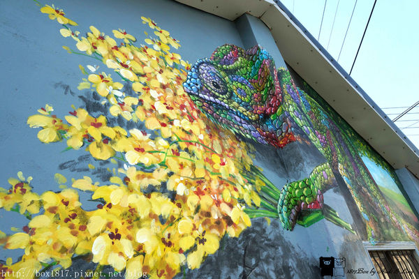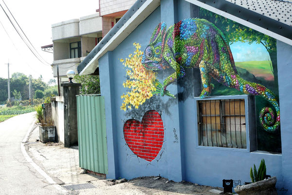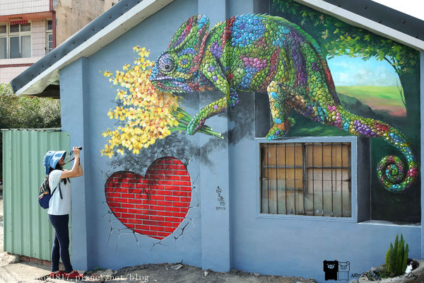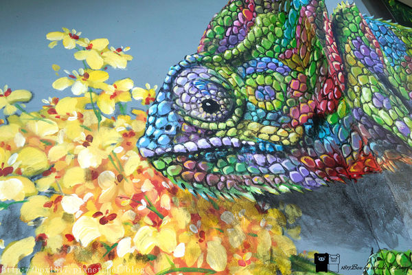 仔細看這隻變色龍畫的相當漂亮,也是我在舊社社區中最喜歡的一幅,