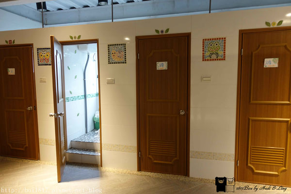 大鋤花間的廁所,每一間都有大片玻璃可以看戶外的綠樹,