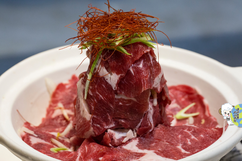 使用澳洲牛肩肉,堆得像高塔一樣高。