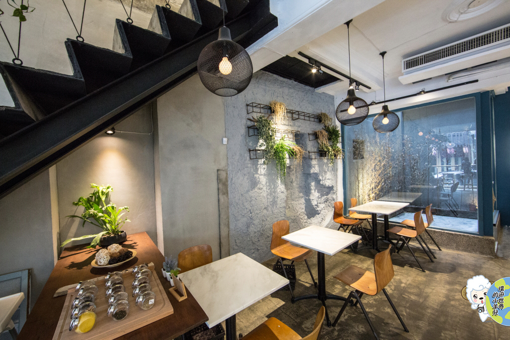 淡藍色的窗戶,坐在這裡,還可以看見乾燥花點綴著的空間美感,