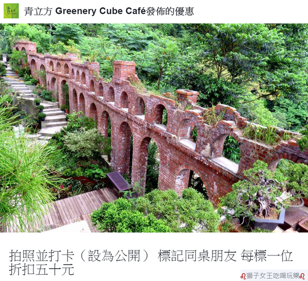 FB官網:青立方 Greenery Cube Café (拍照並打卡(設為公開) 標記同桌朋友 每標一位折扣五十元)