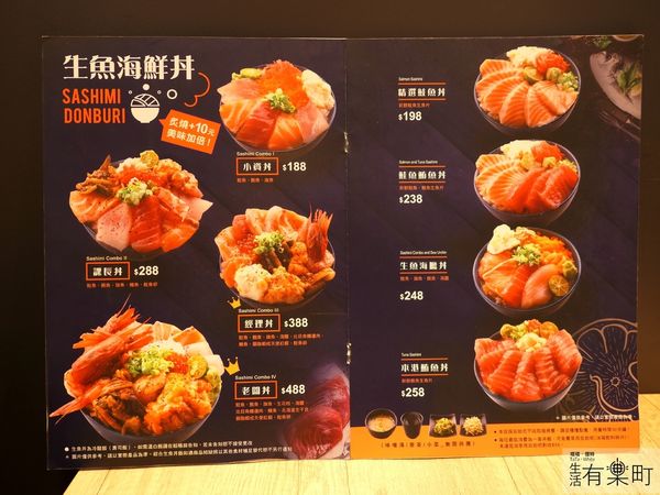 生魚海鮮丼的選項超多元,種類豐盛的小資丼、課長丼與經理丼是,還有多樣炙燒生魚丼飯可選擇,喜歡生魚片的人絕對會吃得很滿足呀。